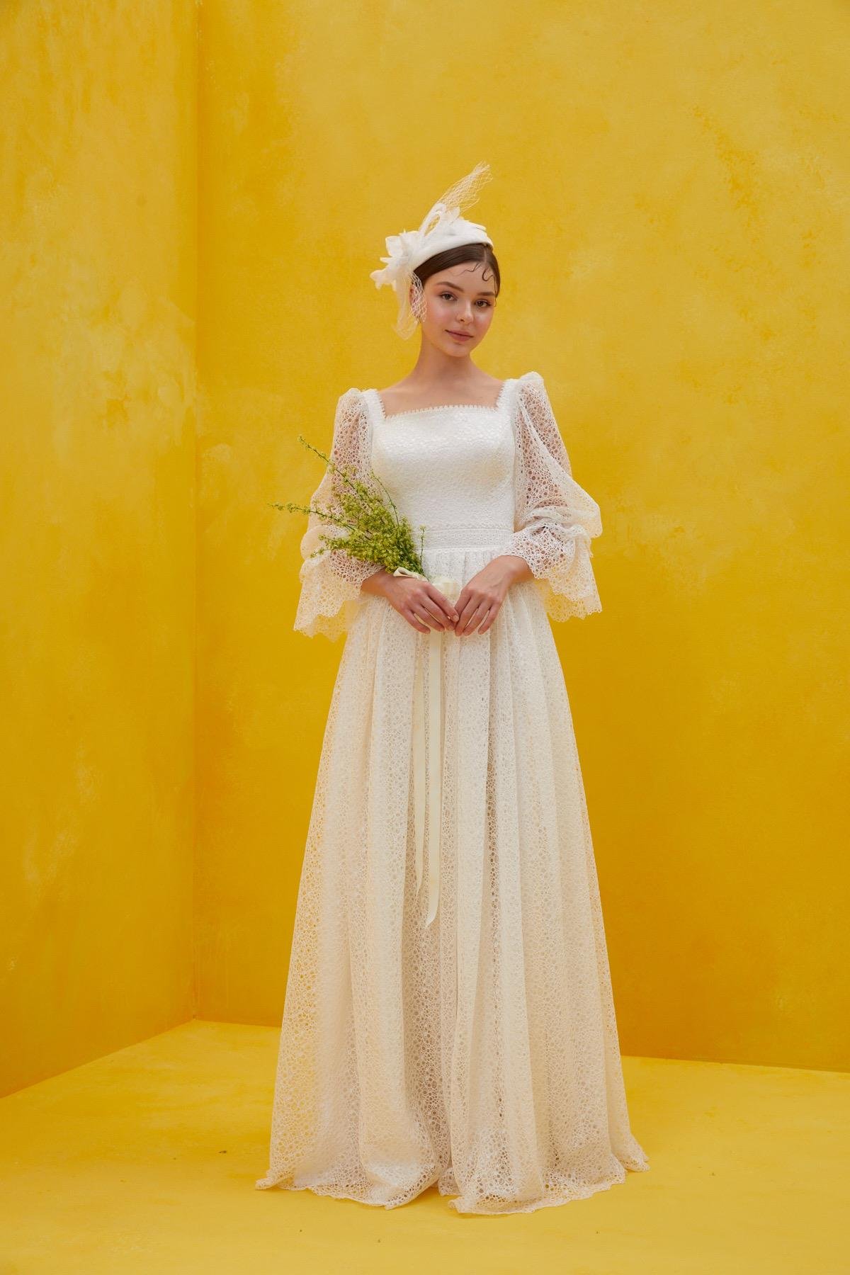 Ürün ekru renkte dokulu dantel ve altında saten kumaş kullanılarak tasarlanmıştır.Üst beden kısmında harç detayları mevcuttur.Sırt kısmında bağcık ile kapanma sağlanmaktadır ve bu ayna zamanda ürünün bedene oturmasını kolaylaştırmaktadır.